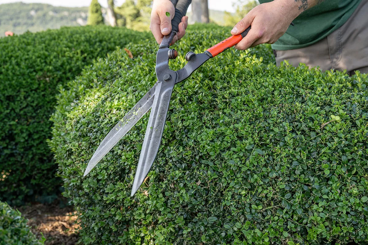 For versatility and excellent results, we recommend Bahco shears (the classic P51-F or P51-SL), which are used by most gardeners. The Japanese also make very good quality shears, but these are reserved for finishing use, such as the ARS shears, which are also extremely precise.